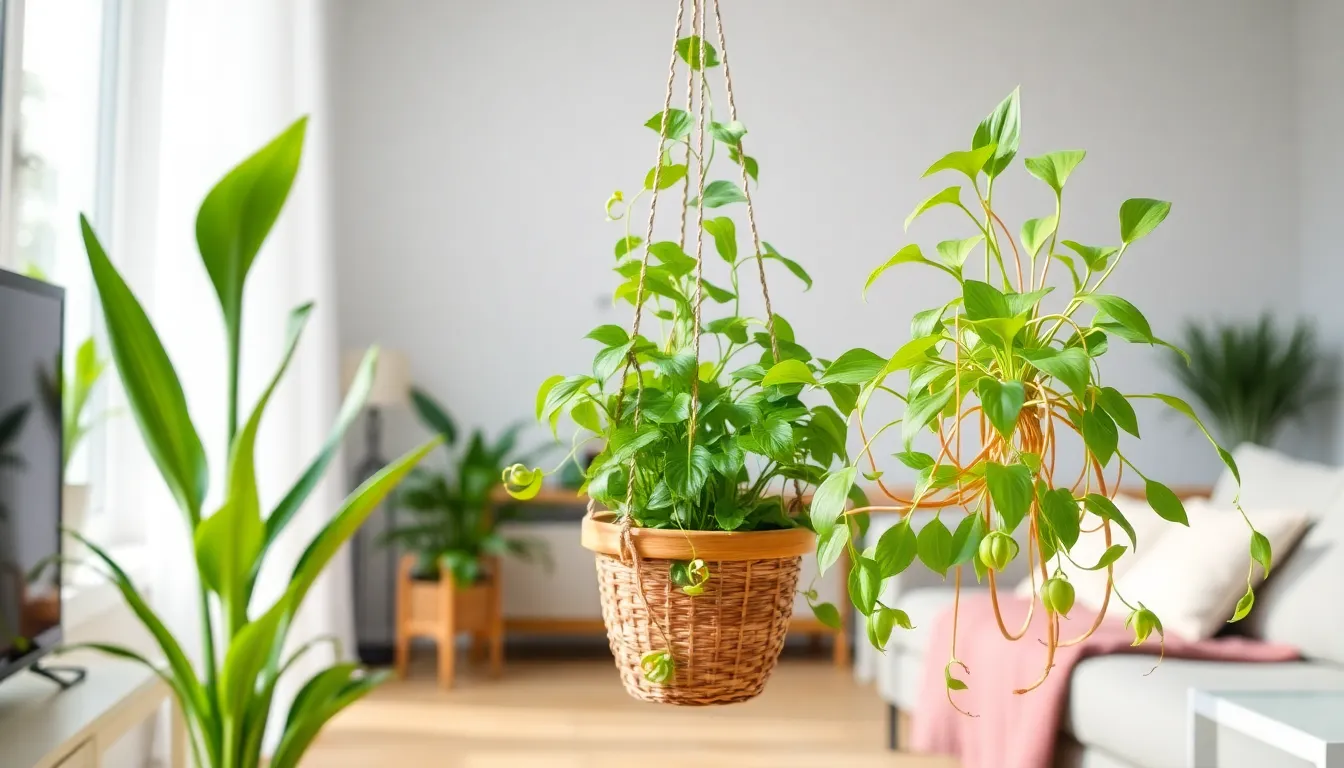 Pothos is a popular trailing plant praised for its vibrant green and yellow variegated leaves. This plant adapts well to different light conditions, from low to bright indirect light. Pothos is forgiving with watering schedules, allowing flexibility for plant owners. It’s also excellent at purifying air by absorbing toxins like formaldehyde. The ability to grow in a hanging basket or as a tabletop accent makes Pothos versatile in decorating any indoor space.